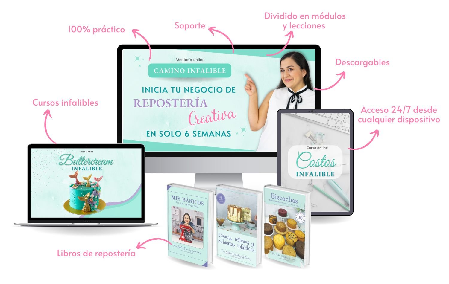 Luego podrás disfrutar del soporte técnico de por vida a través del Correo electrónico: info@postresesther.com